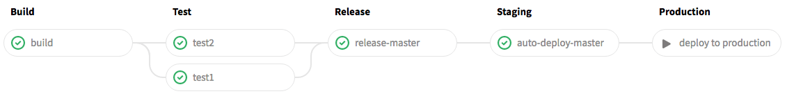 2. Deploy Pipeline: Deploy stage(s) defined in .gitlab-ci.yml The flow of deploying code to servers through various stages: e.g. development to staging to production